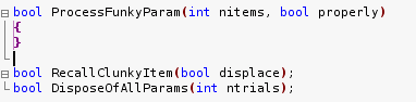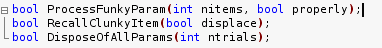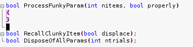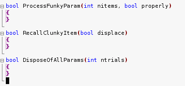 Let’s see a concrete example. Say you have declared three new functions in your header file, and you need to implement them in the module. You copy the following text and paste it into your implementation file: